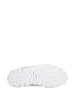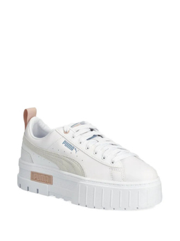 Белая шнуровка спереди, язычок на пятке, перфорированная подошва на платформе