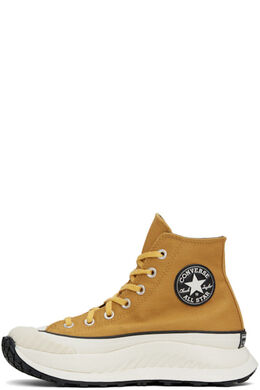 Высокие кеды из хлопчатобумажной саржи желтого цвета. Нашивка с логотипом из искусственной кожи с внутренней стороны. · Круглый текстурированный резиновый носок · Шнуровка · Подкладка из парусины · Мягкая стелька из пеноматериала CX · Промежуточная подошва из пенорезины · Резиновая подошва с протектором · Платформа: H1.5 дюйма