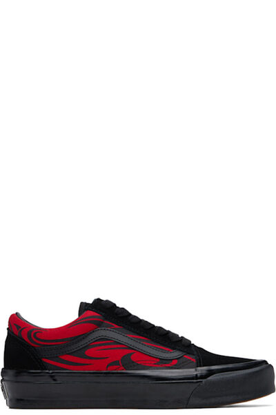 Низкие замшевые и 8-унциевые кроссовки черного и красного цвета. · Графический рисунок напечатан по всей поверхности · Шнуровка · Мягкий язычок и воротник · Боковые полосы из зернистой кожи · Прорезиненная нашивка с логотипом на пятке · Съемная мягкая стелька из пеноматериала Sola ADC · Подкладка из зернистой кожи и холщовой ткани · Резиновая подошва с протектором
