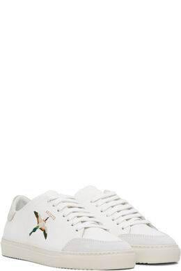 Изготовленные вручную низкие кроссовки из полированной кожи с сертификатом LWG белого и бежевого цветов. · Замшевая отделка на носке · Шнуровка · Мягкий язычок и воротник на пятке · Печать логотипа и вышитая графика на внешней стороне · Подкладка из полированной кожи, переработанной сетки и микрофибры · Тисненый логотип на межподошве · Резиновая подошва с протектором