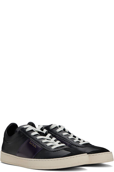 Низкие кроссовки из полированной кожи и замши черного и фиолетового цветов. · Шнуровка · Нашивка с логотипом на мягком язычке · Мягкий воротник · Логотип, напечатанный на внешней стороне · Подкладка из полированной кожи · Текстурированная резиновая подошва · Резиновая подошва с тиснением логотипа
