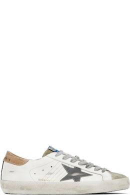 Низкие кроссовки из полированной кожи и замши, изготовленные вручную, белого цвета. · Пятна и легкие потертости по всей поверхности · Шнуровка · Флажок с логотипом на язычке · Мягкий воротник · Перфорация и прошитые полосы по бокам · Аппликация в виде звезды и штамп с логотипом на внешней стороне · Логотип, напечатанный на кожаной вставке с тиснением под крокодила · Подкладка из полированной искусственной кожи, замши и махровой ткани · Резиновая подошва с протектором