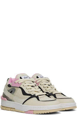 Изготовленные вручную низкие кроссовки из полированной кожи и замши бежевого, розового и черного цветов. · Перфорированные детали и отделка из термополиуретана по всей поверхности · Застежка на шнуровке · Нашивка с логотипом на мягком язычке · Мягкий воротник · Золотистый логотип на пятке · Петля для вытягивания из тесьмы на пятке · Подкладка из переработанной сетки · Тисненый логотип на текстурированной резиновой подошве · Подошва из термопластичной резины с протектором