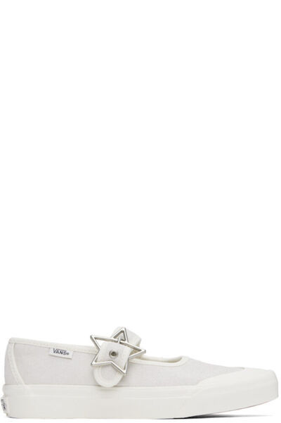 Низкие замшевые кеды в стиле Мэри Джейн в кремово-белом цвете. · Резиновый носок · Графическая фурнитура на ремешке с пряжкой · Отделка из парусины на воротнике · Флажок с логотипом на внешней стороне · Нашивка с логотипом на пятке · Подкладка из парусины · Резиновая подошва с протектором
