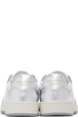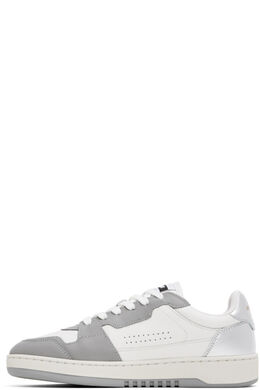 Изготовленные вручную низкие кроссовки из полированной кожи и парусины SEAQUAL® YARN в белых, серых и серебристых тонах. · Перфорированная отделка по всей поверхности · Застежка на шнуровке · Нашивка с логотипом на мягком язычке · Мягкий воротник · Печать с логотипом на внешней стороне и на пятке · Подкладка из переработанной сетки и искусственной замши · Тисненый логотип на текстурированной резиновой подошве · Резиновая подошва с протектором