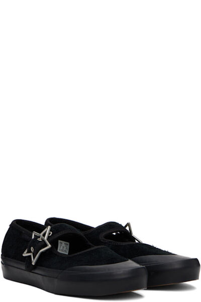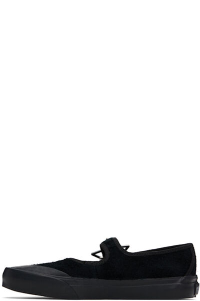 Низкие замшевые кеды в стиле Мэри Джейн черного цвета. · Резиновый носок · Графическая фурнитура на ремешке с пряжкой · Отделка из парусины на воротнике · Флажок с логотипом на внешней стороне · Нашивка с логотипом на пятке · Подкладка из парусины · Резиновая подошва с протектором