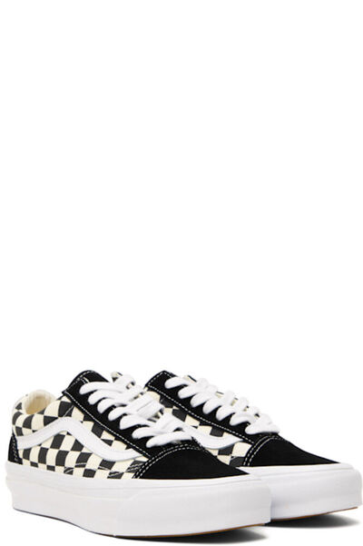 Низкие кеды из парусины и замши черного и бежевого цвета. Узор в клетку на всех моделях. · Шнуровка · Мягкий язычок и воротник · Боковые полосы из зернистой кожи · Прорезиненная нашивка с логотипом на пятке · Съемная мягкая стелька из пеноматериала · Резиновая подошва с протектором · Контрастная строчка белого цвета
