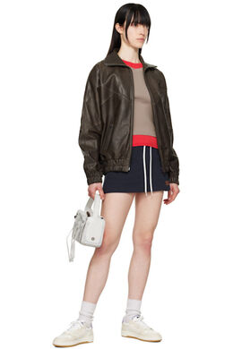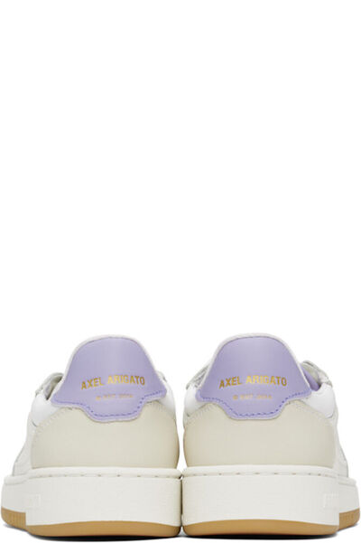 Низкие кроссовки из полированной кожи ручной работы бежевого и фиолетового цвета. · Перфорация на носке и по бокам · Шнуровка · Нашивка с логотипом на мягком холщовом язычке · Мягкий воротник · Печать с логотипом на внешней стороне и на пятке · Подкладка из переработанной сетки и искусственной замши · Тисненый логотип на текстурированной резиновой подошве · Резиновая подошва с протектором