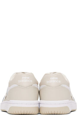 Низкие кроссовки из полированной кожи бежевого и белого цвета. · Перфорация на носке · Шнуровка · Нашивка с логотипом на мягком язычке · Мягкий воротник · Аппликация с логотипом по бокам · Логотип, напечатанный на пятке · Сетчатая подкладка · Резиновая подошва с протектором