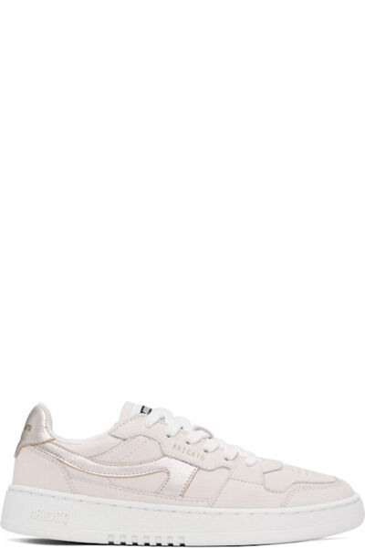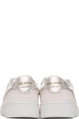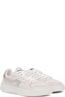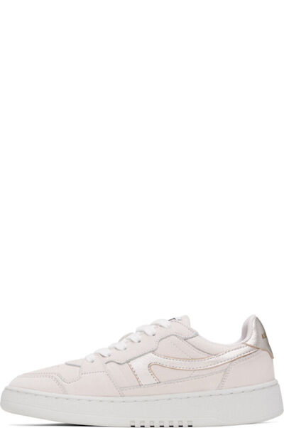Низкие кроссовки из нубука и зернистой кожи ручной работы в кремово-белых и серебристых тонах. · Перфорация на носке · Шнуровка · Нашивка с логотипом на язычке из переработанной парусины SEAQUAL® YARN · Мягкий воротник · Аппликация с логотипом по бокам · Печать с логотипом на внешней стороне и на пятке · Подкладка из сетки и искусственной замши · Тисненый логотип на текстурированной резиновой подошве · Резиновая подошва с протектором