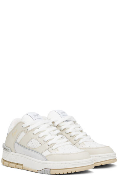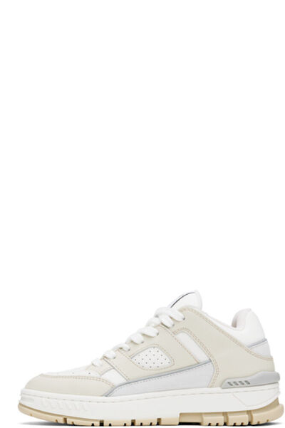 Низкие кроссовки из полированной кожи, замши и парусины с сертификатом LWG белого, бежевого и серого цветов. · Ручная работа · Перфорация на носке и по бокам · Шнуровка · Нашивка с логотипом на мягком язычке · Мягкий воротник · Печать с логотипом на внешней стороне · Подкладка из сетки и искусственной замши · Тисненый логотип на межподошве · Резиновая подошва с протектором