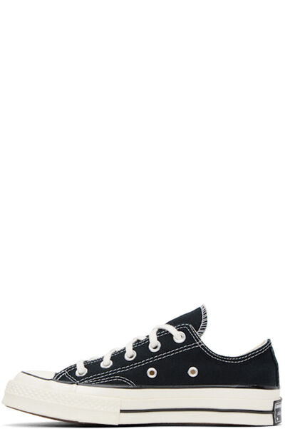 Низкие парусиновые кеды черного цвета. · Резиновый носок · Шнуровка · Люверсы с внутренней стороны · Прорезиненная нашивка с логотипом на пятке · Мягкая стелька OrthoLite® · Подкладка из парусины · Резиновая подошва с протектором · Контрастная строчка белого цвета