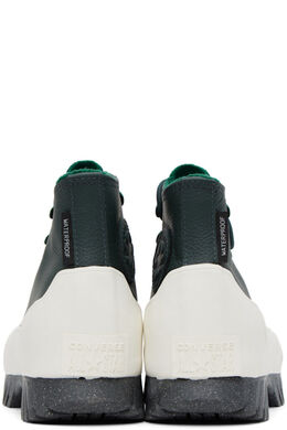 Высокие водонепроницаемые кроссовки из зернистой кожи зеленого цвета. · Резиновый носок · Шнуровка · Логотип на внутренней стороне · Стелька из ЭВА · Флисовая подкладка · Прорезиненная отделка по ранту · Промежуточная подошва из вспененной резины · Резиновая подошва с протектором · Платформа: H1.25"