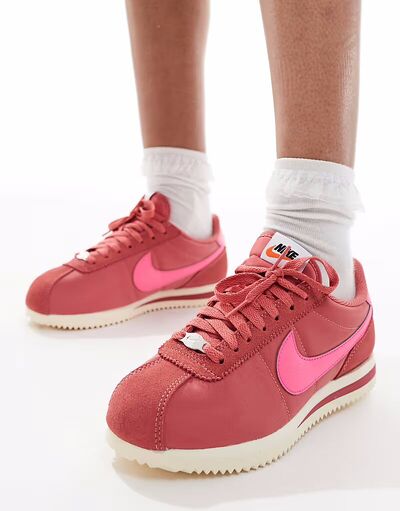 Кроссовки Nike Cortez TXT из замши темно-розового цвета 139762114 | bright pink