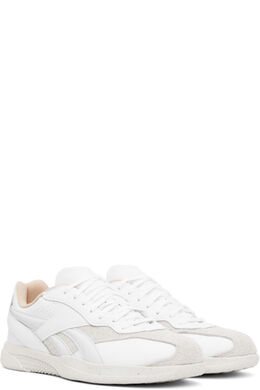 Низкие кроссовки из зернистой кожи белого цвета. · Замшевая отделка на носке и по бокам · Шнуровка · Тисненый логотип на мягком язычке · Перфорация на мягком воротнике и пятке · Фирменные полосы по бокам · Вышитый логотип на заднике · Подкладка из джерси · Текстурированная резиновая подошва с протектором