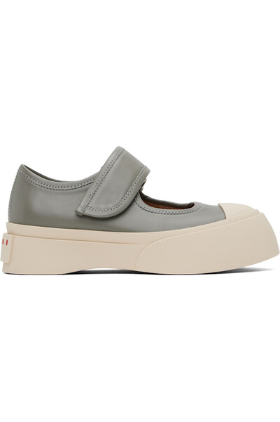 Кожаные кроссовки в стиле Mary Jane Marni, серый 251379f118004 | neutral grey