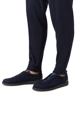 Кеды DBS-Olympic на резиновой подошве в тон выполнили из замши. Кожаные язычок под брендированной шнуровкой и фигурную накладку на заднике с текстильной петлей окрасили в фирменной технике velatura.