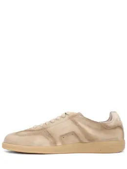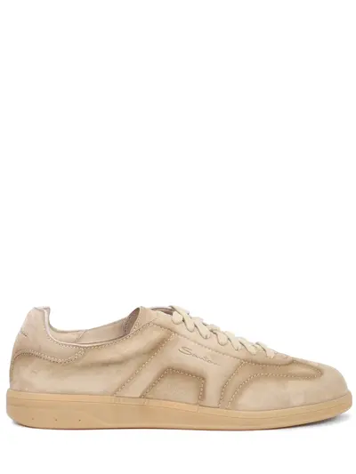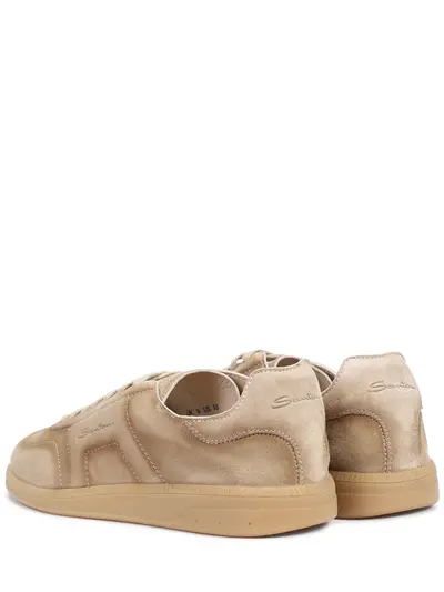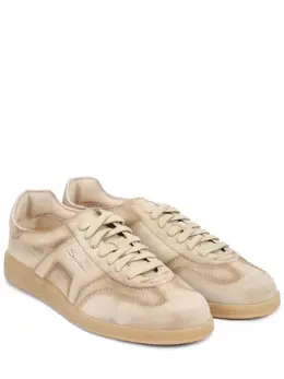 -Бежевые кеды из бархатистой замши от SANTONI.