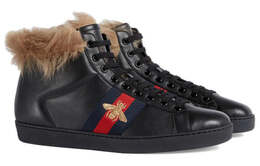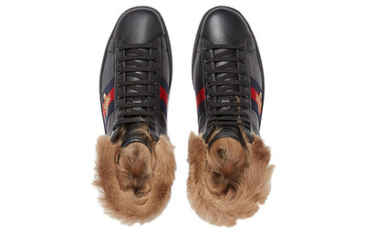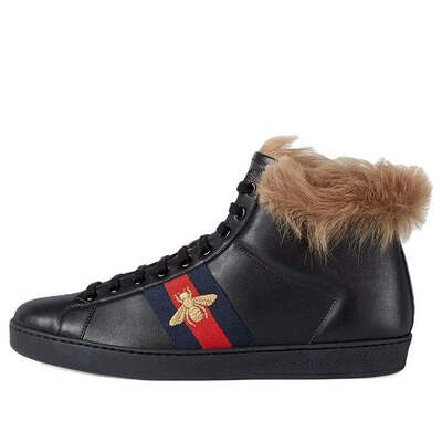 Кроссовки stripe ace high 'black fur' Gucci, черный 497367-0fi50-1093 | black/brown/navy/red