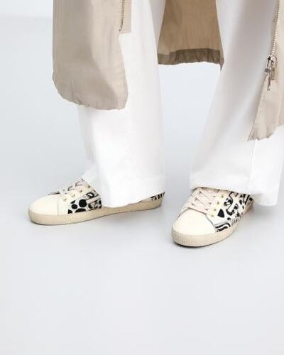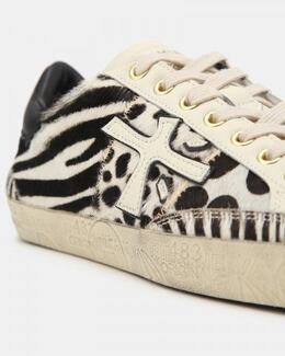 Кроссовки Steven от Premiata выполнены из ворсовой кожи в комбинированном дизайне с анималистичным паттернами. Внутренняя подкладка и стелька обеспечивают высокую воздухопроницаемость и комфорт на протяжении всего дня. Подошва из резины дополнена фирменным дизайном. Язычок, задник и боковые поверхности декорированы оригинальными эмблемами бренда.