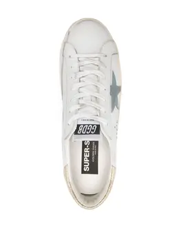 Белый, сине-серый, золотистый, телячья кожа, замшевые вставки, эффект змеиной кожи, нашивка в форме звезды сбоку, эффект потертости, металлический логотип, нашивка с логотипом на язычке, шнуровка спереди, закругленный носок, контрастный задник с логотипом, кожаная стелька с логотипом и плоская резиновая подошва. К этому товару прилагается сертификат подлинности. В комплект входит мешок-пыльник для хранения.