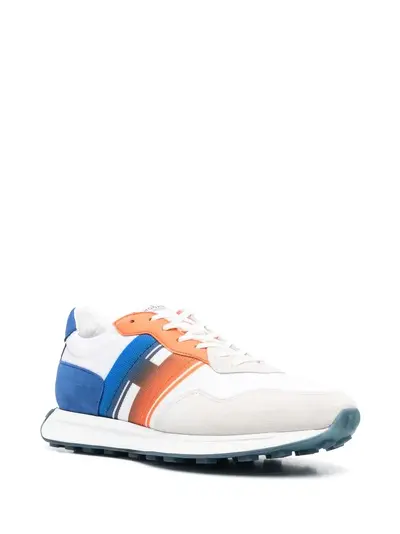 Подробнее о товаре: • white/royal blue/tangerine orange • calf leather • suede panels • logo patch to the side • gradient effect • contrasting heel counter • front lace-up fastening • almond toe • branded insole • memory foam insole • flat rubber sole
