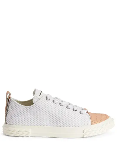 Белый, расцветка Light Brown, цвет слоновой кости, кожа, сетчатый дизайн, тиснение под кожу крокодила, нашивка с логотипом на язычке, стелька с логотипом, детали с молниями, закругленный носок, шнуровка спереди, петля для подтягивания сзади и плоская резиновая подошва.