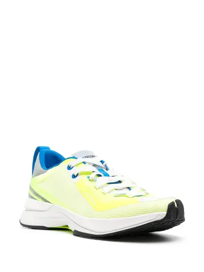 Лимонный, синий, белый, замша из телячьей кожи, стиль колор-блок, сетчатые вставки, логотип сбоку, нашивка с логотипом на язычке, шнуровка спереди, закругленный носок, петля для подтягивания с логотипом и массивная резиновая подошва.