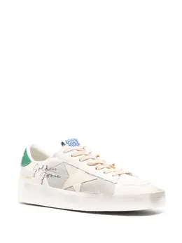 Белый/разноцветный, телячья кожа, искусственно состаренное покрытие, перфорированный носок, нашивка с логотипом на язычке, логотип сбоку, нашивка в форме звезды сбоку, контрастный задник с логотипом, закругленный носок, шнуровка спереди, стелька с логотипом и плоская резиновая подошва.