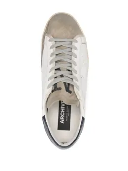 Подробнее о товаре: • белый • кожа буйвола • эффект потертости • вставки в стиле колор-блок • шнуровка спереди • контрастный задник • перфорация сбоку • логотип сбоку • перфорированный логотип сбоку • язычок с логотипом • замшевые вставки • закругленный носок • уплотненная щиколотка • кожаная стелька с логотипом • подкладка из футера • плоская резиновая подошва • В комплект входит мешок-пыльник для хранения.