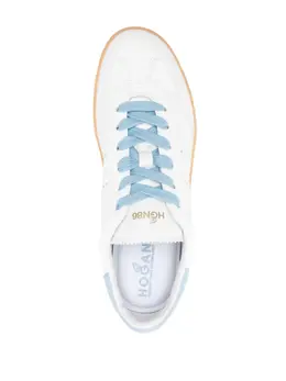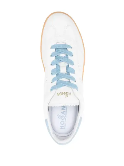 Подробнее о товаре: • белый/голубой • телячья кожа • дизайн со вставками • закругленный носок • перфорированный носок • перфорированный логотип по бокам • нашивка с логотипом на язычке • контрастный задник • стелька с логотипом • логотип на подошве • плоская резиновая подошва • шнуровка спереди