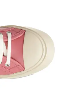 Подробнее о товаре: • розовый • закругленный носок • толстая подошва на платформе • шнуровка • контрастная резиновая подошва