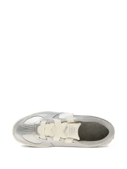 Подробнее о товаре: • серебристый • шнуровка • контрастная подошва • дутый воротник • логотип • резиновая подошва