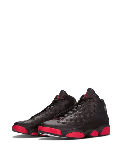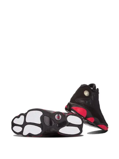 Подробнее о товаре: Кроссовки 'Air Jordan 13 Retro' от jordan. Миндалевидный носок, шнуровка спереди, язычок с логотипом, фирменная стелька, уплотненная щиколотка и резиновая подошва. Цвет: черный, красный. • Это унисекс-модель. Обратите внимание, что для нее используется мужская размерная сетка