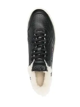 Черный, телячья кожа, подкладка из овечьей шерсти, перфорация, нашивка с логотипом на язычке, закругленный носок, шнуровка спереди и рифленая резиновая подошва.