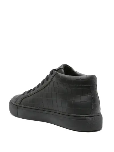 Подробнее о товаре: Черный, телячья кожа, тиснение под кожу крокодила, металлический логотип на язычке, закругленный носок, шнуровка спереди, резиновая подошва и логотип на подошве.