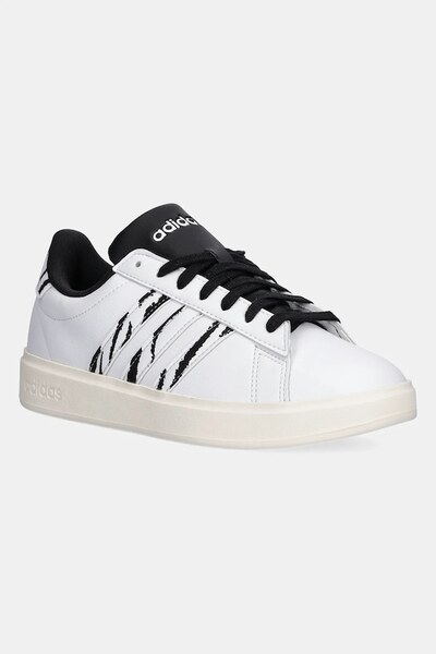 Эти кроссовки Adidas изготовлены из экокожи. Они оснащены прочной и износостойкой резиновой подошвой. - Круглый, жёсткий носок. - Усиленный задник обеспечивает отличную поддержку лодыжки и пятки. - Резиновая подошва прочная и устойчивая к повреждениям. - Плоские шнурки устраняют давление на подъем стопы, обеспечивая хорошую посадку и комфорт. - Текстильная внутренняя часть комфортна для ног и облегчает содержание обуви в чистоте. - Длина вставки: 23,5 см. - Размеры указаны для размера: 38.