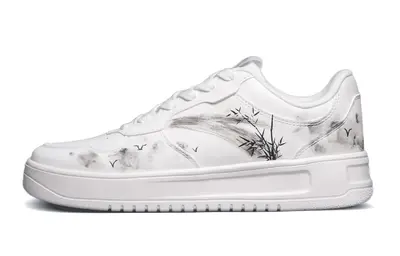 Антискользящие амортизирующие износостойкие низкие скейтерские кроссовки мужские бело-черные Anta Life Collection 912418001q-2(team65-墨韵竹影) | white black