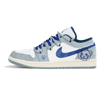 Air 1 Износостойкие Низкие Винтажные Баскетбольные Кроссовки Мужские Синие Белые Jordan fn5214-141(team210-小熊涂鸦) | blue white
