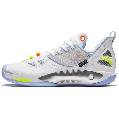 Прочные дышащие низкие баскетбольные кроссовки Anta Shock Wave 5 мужские бело-синие 112411106-3 | white blue