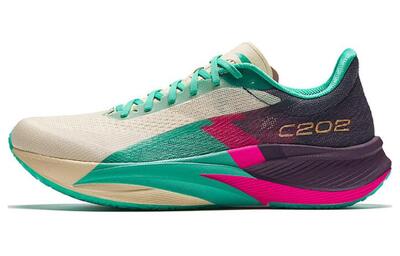 Антискользящие износостойкие низкие марафонские беговые кроссовки Anta C202 5th Gen мужские бежево-зелено-красные 112455563-4 | beige green red