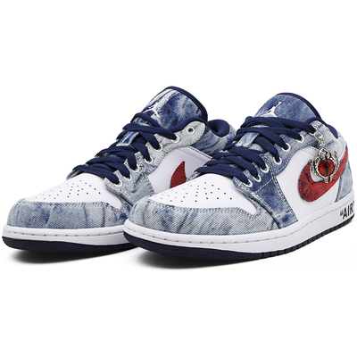 Эйр 1 Противоскользящие и износостойкие легкие низкие винтажные баскетбольные кроссовки мужские бело-синие Jordan cz8455-100(team91-乔丹 红眼睛) | white blue