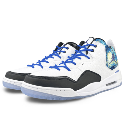 Courtside 23 Амортизирующие нескользящие мид-топ винтажные баскетбольные кроссовки унисекс черный синий белый Jordan, черный белый синий ar1000-104(team401-梦境星空) | black white blue