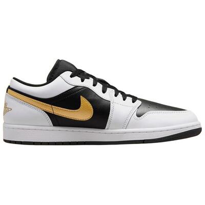 Jordan Кроссовки 1 Low White Black Metallic Gold Swoosh 553558-172 | white black