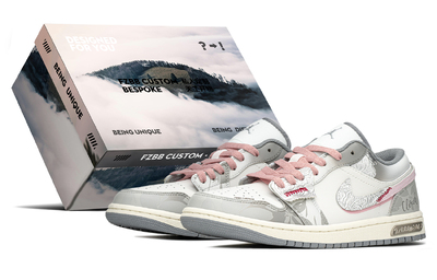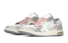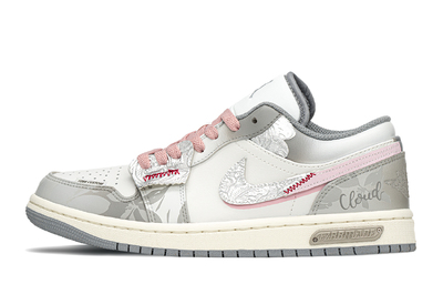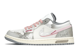 Air 1 Low-Top Vintage Баскетбольные Кроссовки Серые Розовые GS Jordan 553560-053(teama-蕾丝花s-box) | gray pink