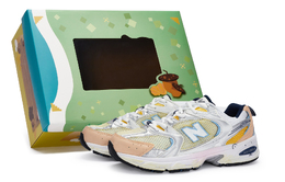 Кроссовки New Balance 530 с амортизацией, противоскользящие, дышащие, низкие, унисекс бело-желто-оранжевые mr530sg(team80-男女款芒果夹心s-box) | white yellow orange