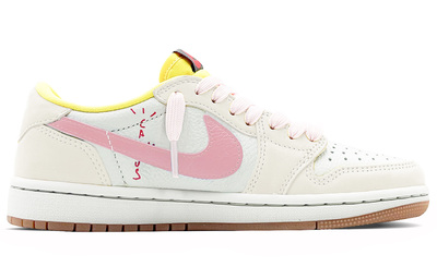 Jordan Трэвис Скотт X Air 1 Винтажные баскетбольные кроссовки Женские Низкие Экрю/Розовый Джордан, Розовый Белый dz4137-700(team137-粉白倒勾) | pink white