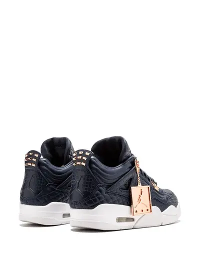 Кроссовки Air Jordan 4 Retro Premium от Jordan. Передняя шнуровка, плоская подошва, большой язык, закругленный носок, прошитые панели и золотистая фурнитура. Цвет: черный.