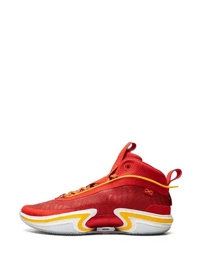 Красный, сетчатые вставки, логотип Jumpman, закругленный носок, шнуровка спереди, двойная петля для подтягивания, высота по щиколотку, стелька с логотипом и массивная резиновая подошва. Эта модель представлена на маркетплейсе, где можно найти самые редкие модели кроссовок, о которых мечтают коллекционеры и любители streetwear по всему миру.