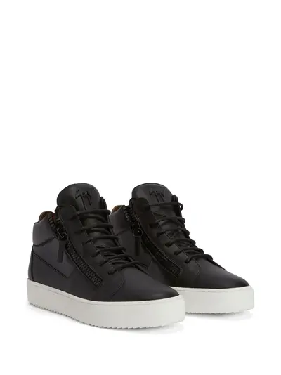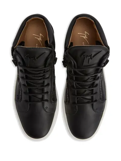 Черный/белый, кожа, гладкая текстура кожи, вставки, принт с логотипом сзади, тисненый логотип на язычке, закругленный носок, высота по щиколотку, шнуровка спереди, застежка на молнии сбоку, петля для подтягивания сзади, стелька с логотипом и рифленая резиновая подошва.